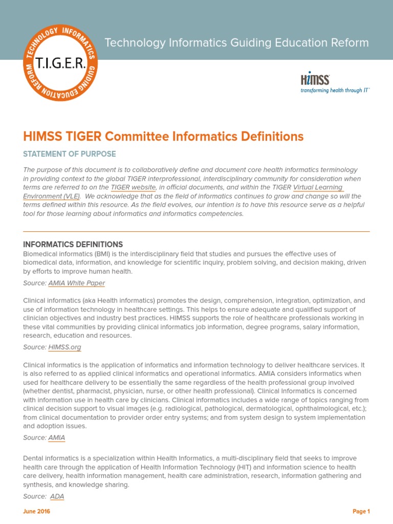Tiger Definitions Final Health Informatics Health Care Free